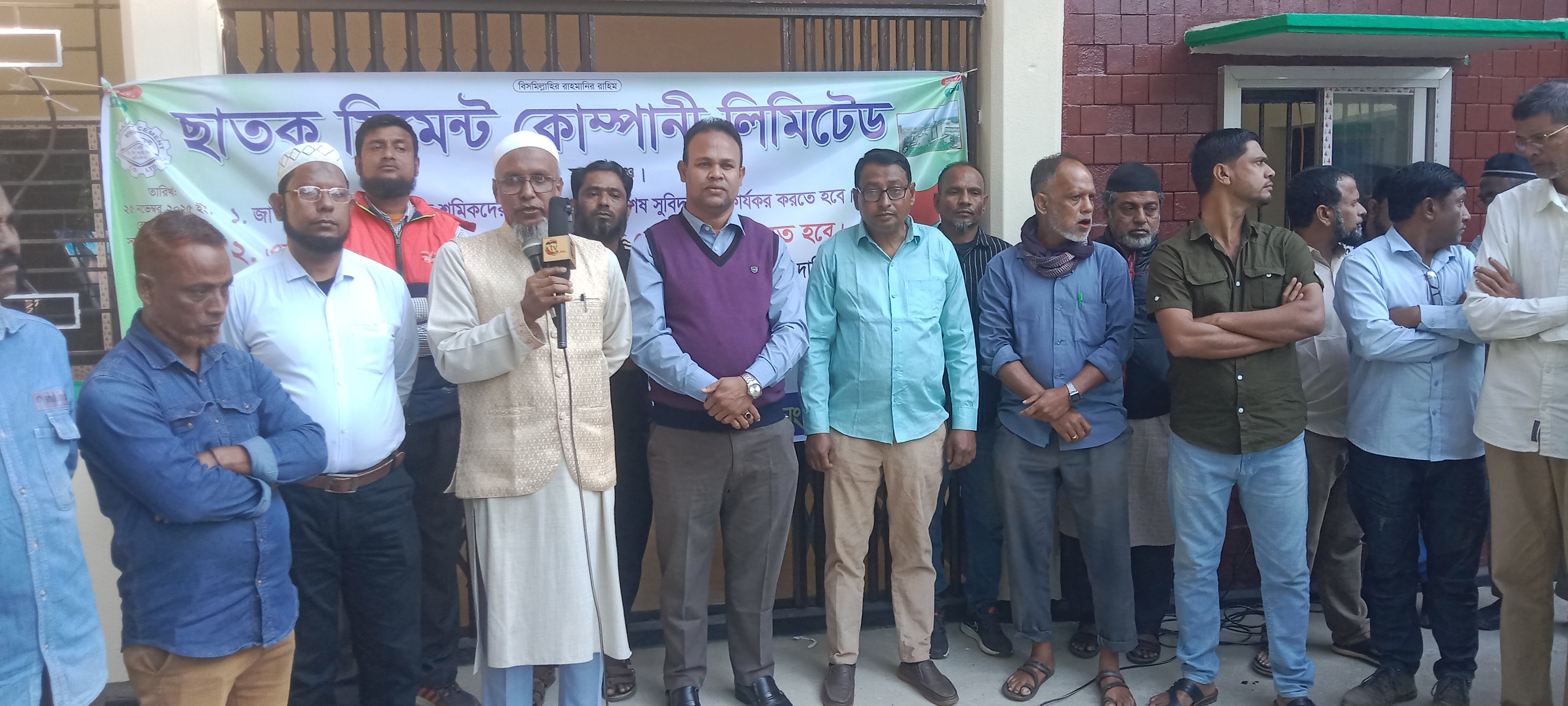 মঙ্গলবার সকাল ৮ টায় ছাতক সিমেন্ট কারখানার প্রধান ফটক (টাইম অফিসের সামনে) জাতীয় মজুরী কমিশন ভূক্ত শ্রমিকদের ৫ ভাগ ও ১৫ ভাগ বিশেষ সুবিধা দ্রুত কার্যকর করতে, একই পদে ১০ বছর পূর্তিতে উচ্চতর গ্রেড প্রদান করতে ও ছাতক সিমেন্ট কারখানা দ্রুত চালু করণ ও এক কর্পোরেশন এক কমিশনের দাবীতে গেট মিটিং ও মানববন্ধনে আরও বক্তব্য রাখেন কারখানার সিবিএ কার্যকরি সভাপতি মিয়া হোসেন,