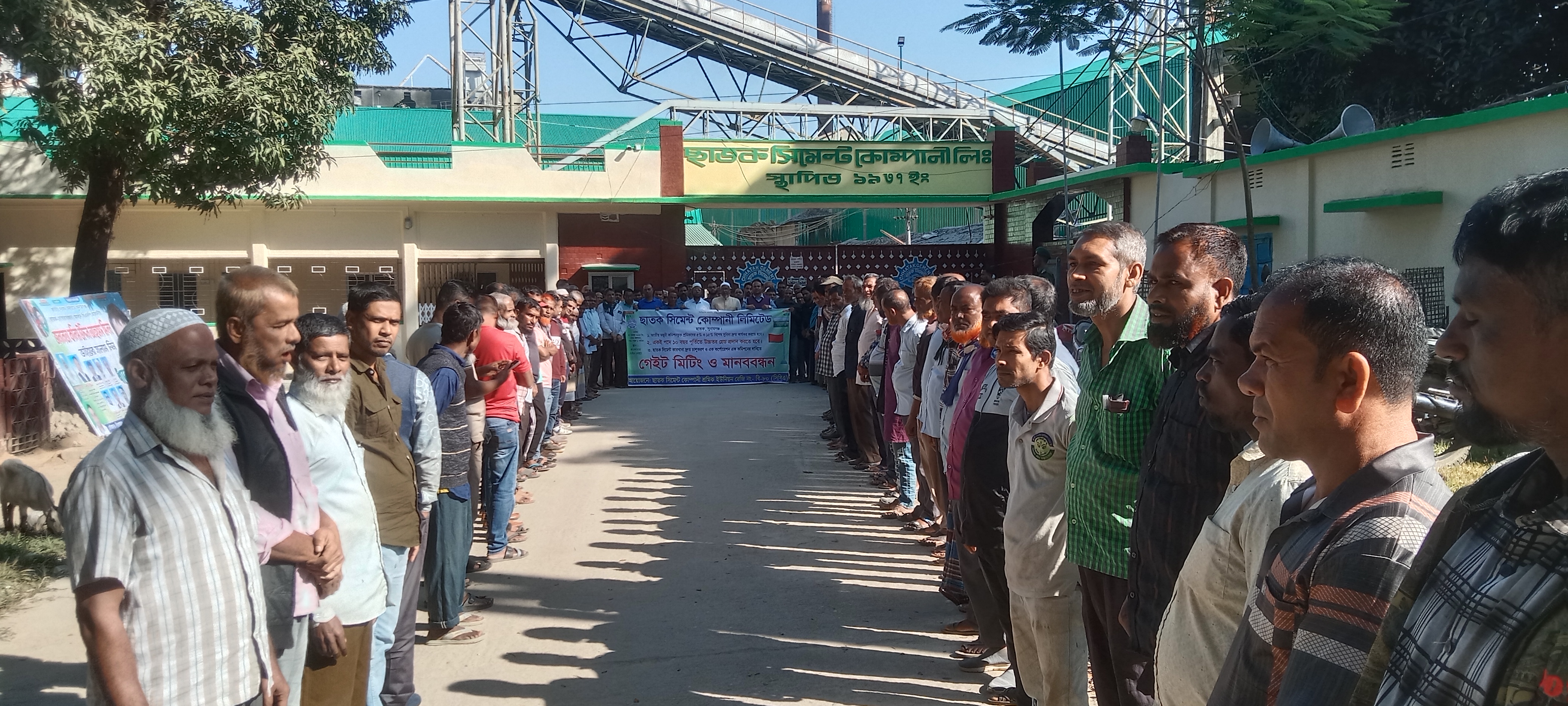 ছাতক সিমেন্ট কারখানায় মজুরী কমিশনের দাবীতে শ্রমিকদের গেট মিটিং ও মানববন্ধন।