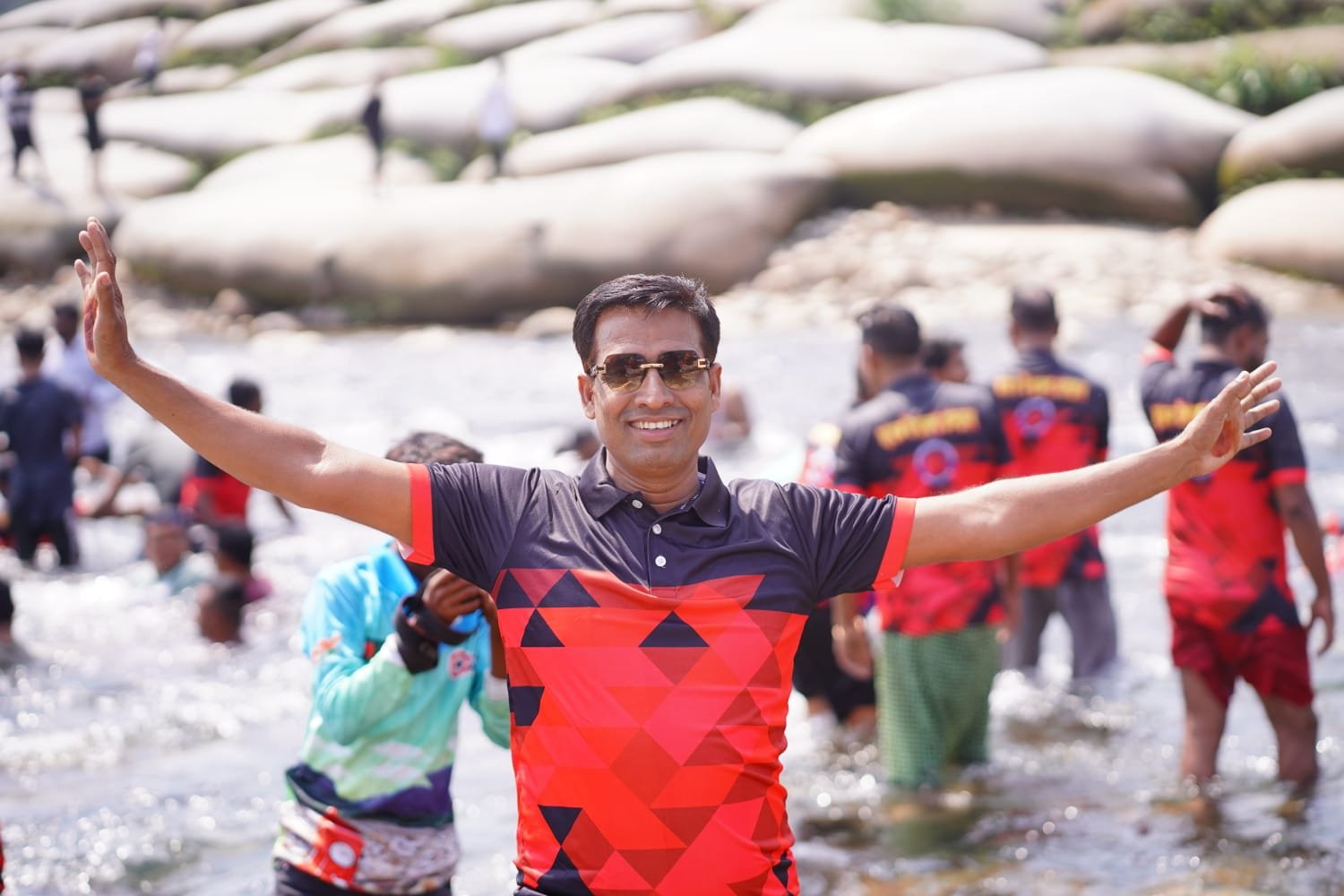 আনন্দ ভ্রমণে সাদা পাথরে ভারত থেকে গড়িয়ে আসা ঝর্ণার পানিতে নেমে আনন্দন গোসলে মেতে উঠেন উপজেলা প্রেসক্লাবের সদস্যরা।