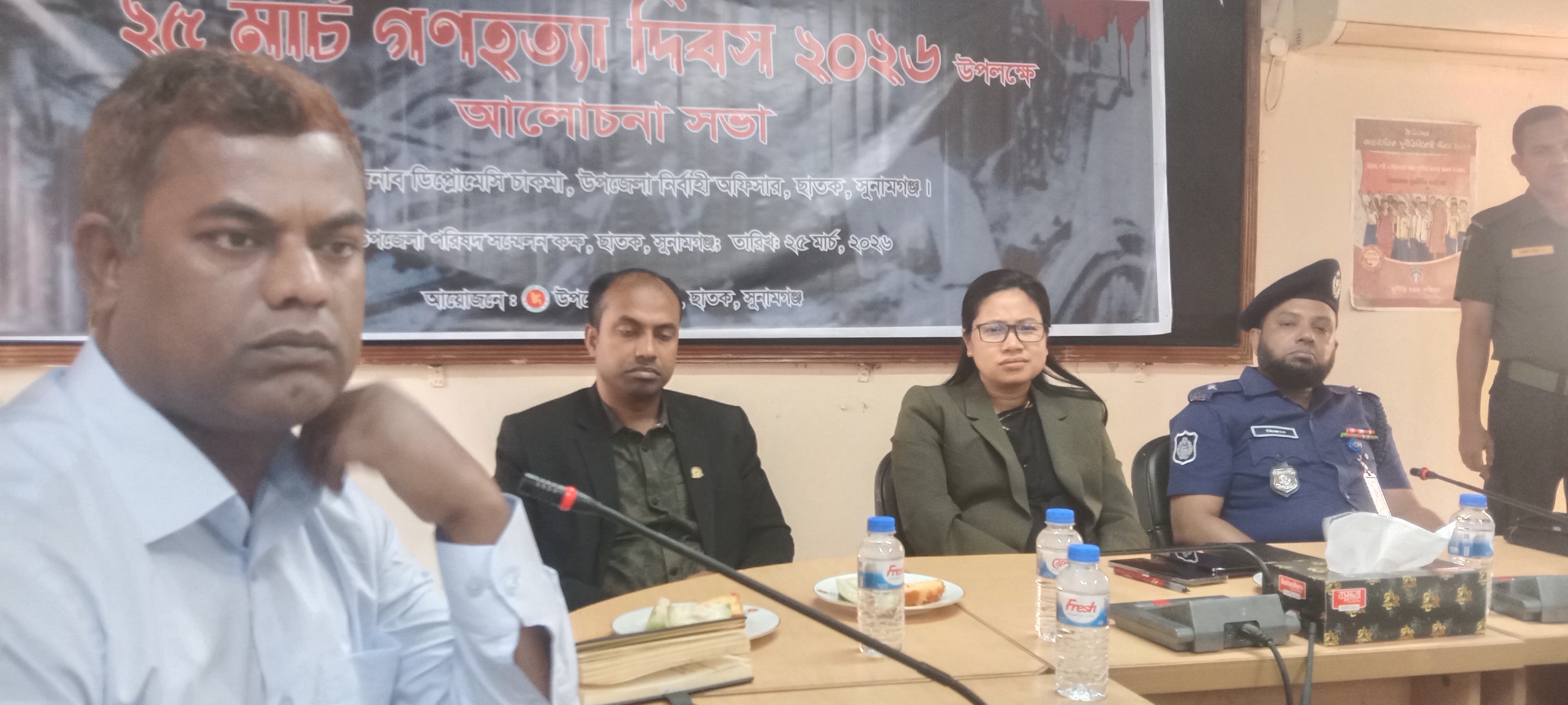 সুনামগঞ্জের ছাতক উপজেলা প্রশাসনের উদ্যোগে গণ হত্যা দিবস উপলক্ষে শহর তলীর মাধব পুরস্থ শিখা সতেরোতে মুক্তি যোদ্ধে শহিদ দের স্মরণে সকাল সাড়ে দশটায় পুষ্প স্থবক অর্পন করেন উপজেলা প্রশাসন,উপজেলা মুক্তি যোদ্ধা কমান্ড,পৌর সভা সহ নানা সামাজিক সংগঠন পুষ্প স্থবক অর্পন করেন।