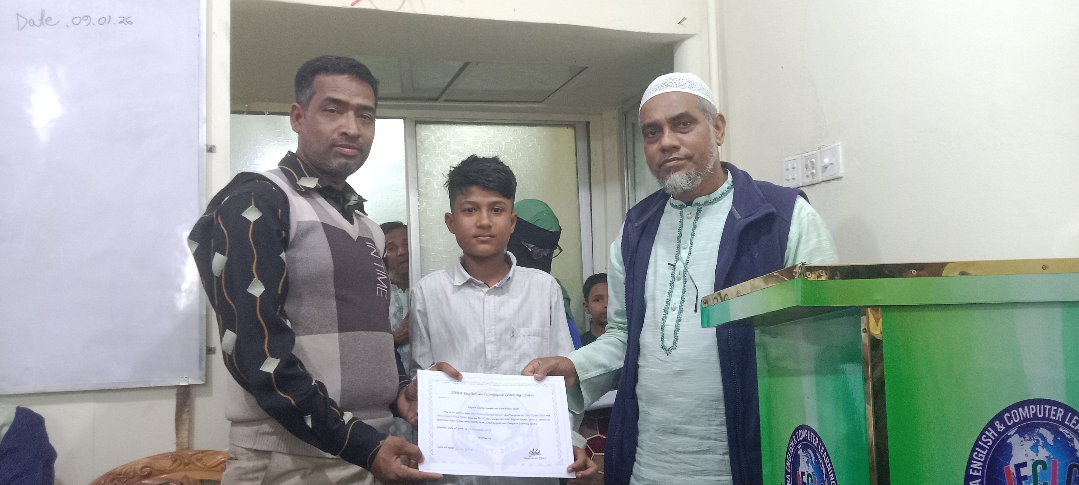 শিক্ষার্থীদের মধ্যে সনদ পত্র ও পুরু্ষ্কার বিতরণ করেন লার্নিং সেন্টারের চেয়ারম্যান আলহাজ্ব জাহাঙ্গীর আলম।