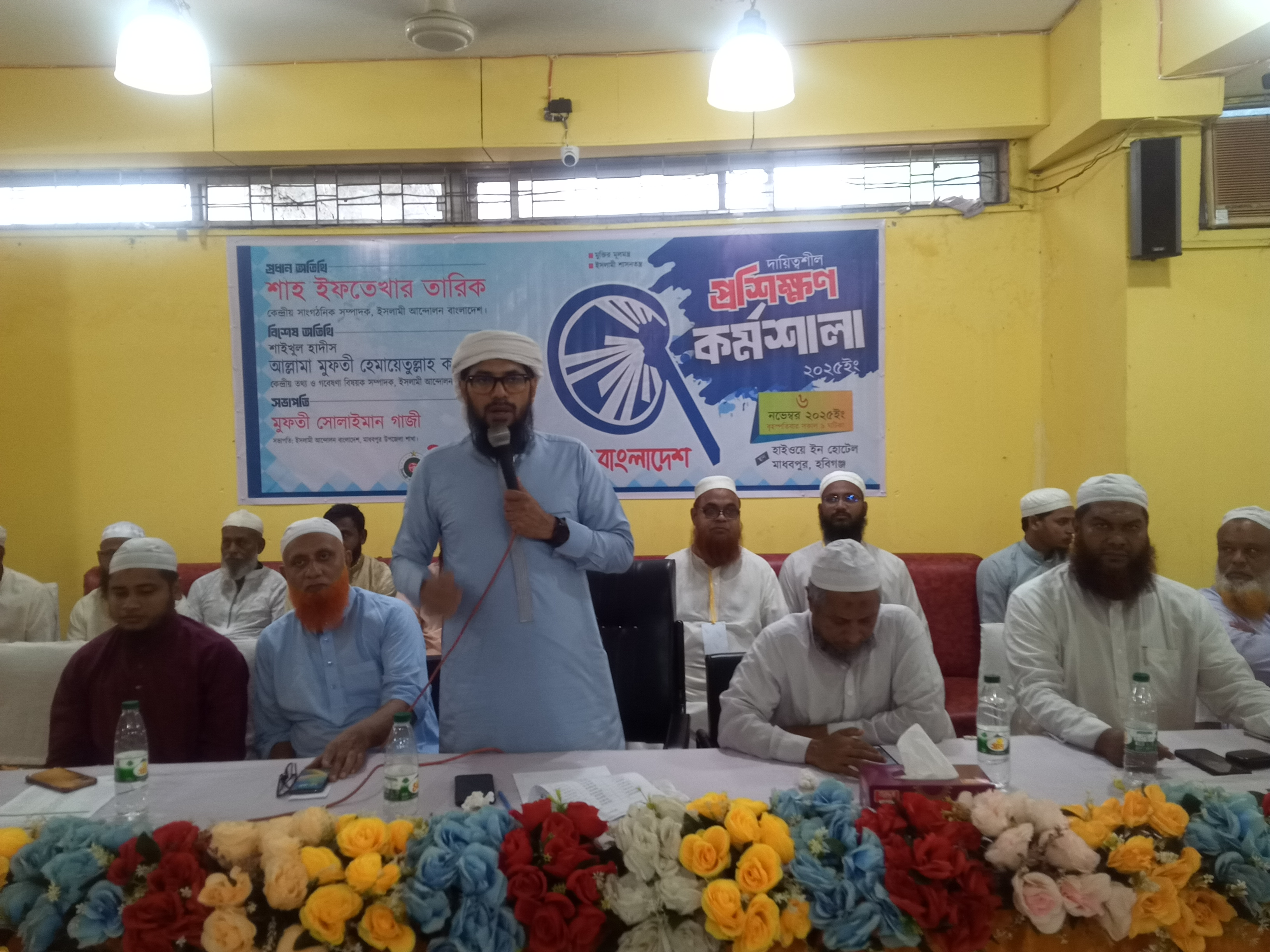 বৃহস্পতিবার (৬ নভেম্বর) মাধবপুরের হাইওয়ে ইন হোটেলের মিলনায়তনে অনুষ্ঠিত এ কর্মশালায় সভাপতিত্ব করেন ইসলামী আন্দোলন বাংলাদেশ মাধবপুর উপজেলা শাখার সভাপতি মুফতি সোলাইমান গাজী ও প্রধান অতিথি ছিলেন ইসলামী আন্দোলন বাংলাদেশের কেন্দ্রীয় সাংগঠনিক সম্পাদক শাহ ইফতেখার তারিক। বিশেষ অতিথি হিসেবে উপস্থিত ছিলেন কেন্দ্রীয় তথ্য ও গবেষণা বিষয়ক সম্পাদক শাইখুল হাদীস মুফতি হেমায়েতুল্লাহ কাশেমী।