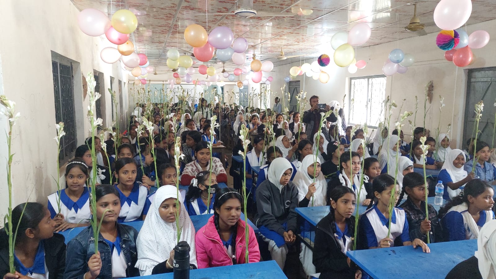 নবীন বরণ অনুষ্ঠানে ষষ্ঠশ্রেণীতে নবাগত ভর্তি ২৭৫ জন মেয়ে শিক্ষার্থীর হাতে রজনীগন্ধ্যা ফুল দিয়ে বরণ করে নেওয়া হয়।