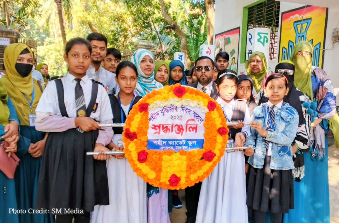 টাঙ্গাইলের নাগরপুরে শহীদ বুদ্ধিজীবী দিবসে শহীদ ক্যাডেট স্কুলের শ্রদ্ধা নিবেদন