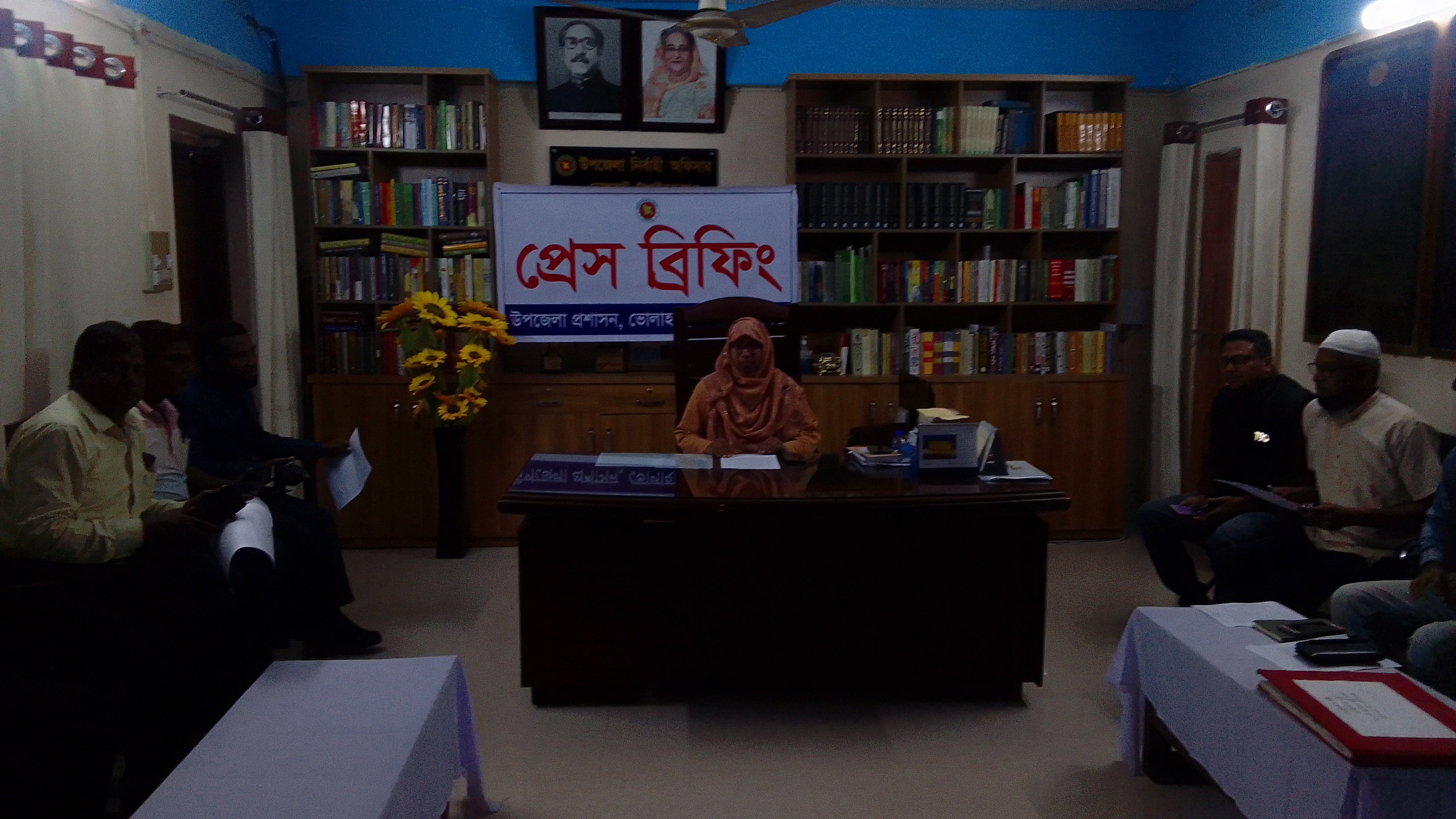 ছবি: ২২ মার্চ ২০২৩ সারাদেশের ন্যায় আশ্রয়ণ-২ প্রকল্পের আওতায় ভোলাহাট উপজেলাকে গৃহহীন ও ভূমিহীনমুক্ত ঘোষণার লক্ষ্যে উপজেলা নির্বাহী অফিসার উম্মে তাবাসসুমের স্থানীয় সাংবাদিকদের সাথে প্রেস ব্রিফিং করার দৃশ্য।