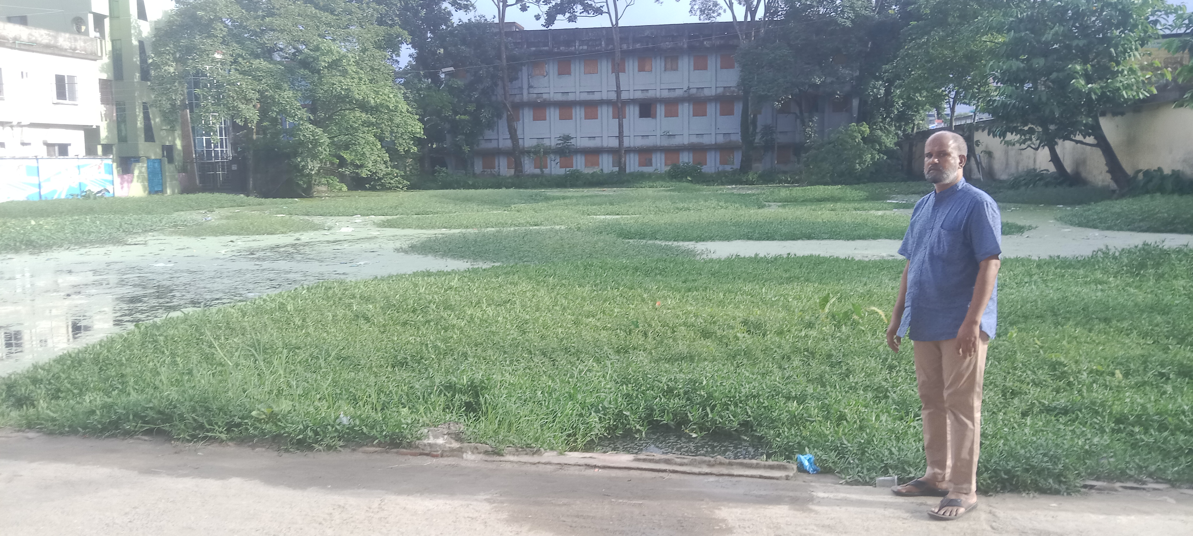 ছবি: ছাতক হাইস্কুলের পুকুর পরিস্কার করে দৃষ্টি নন্দন করার দাবি ব্যবসায়ীদের।