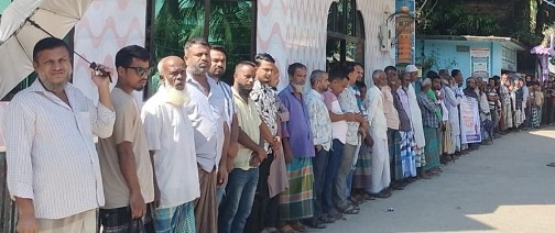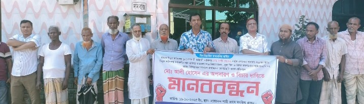 ছবি: ছাতকে বিদ্যুৎ অফিসের অস্থায়ী শ্রমিক আলী হোসেনের অনিয়ম দুর্নীতির বিরুদ্ধে এলাকা বাসীর মানববন্ধন