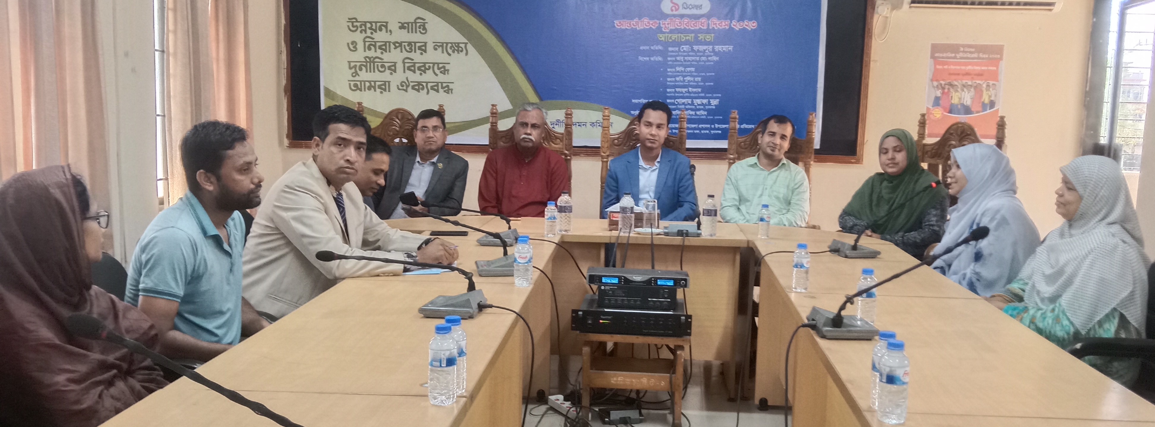 সুনামগঞ্জের ছাতকে “উন্নয়ন শান্তি ও নিরাপত্তার লক্ষ্য দুর্নীতির বিরুদ্ধে আমরা ঐক্যবদ্ধ ” এ প্রতিপাদ্যকে সামনে রেখে উপজেলা প্রশাসন ও উপজেলা দুর্নীতি প্রতিরোধ কমিটির উদ্যোগে ৯ ডিসেম্বর আন্তর্জাতিক দুর্নীতি বিরোধী দিবস ২০২৩ উপলক্ষে নানা কর্মসূচীর মধ্য সকালে উপজেলা চত্বরে জাতীয় ও দুদক পতাকা উত্তোলন, শহরের শহীদ মিনারের সামনে দুর্নীতি বিরোধী মানববন্ধন, দুপুরে উপজেলা সম্মেলন কক্ষে আলোচনা সভা সহ দিন ব্যাপী কর্মসূচী পালন করা হয়েছে।