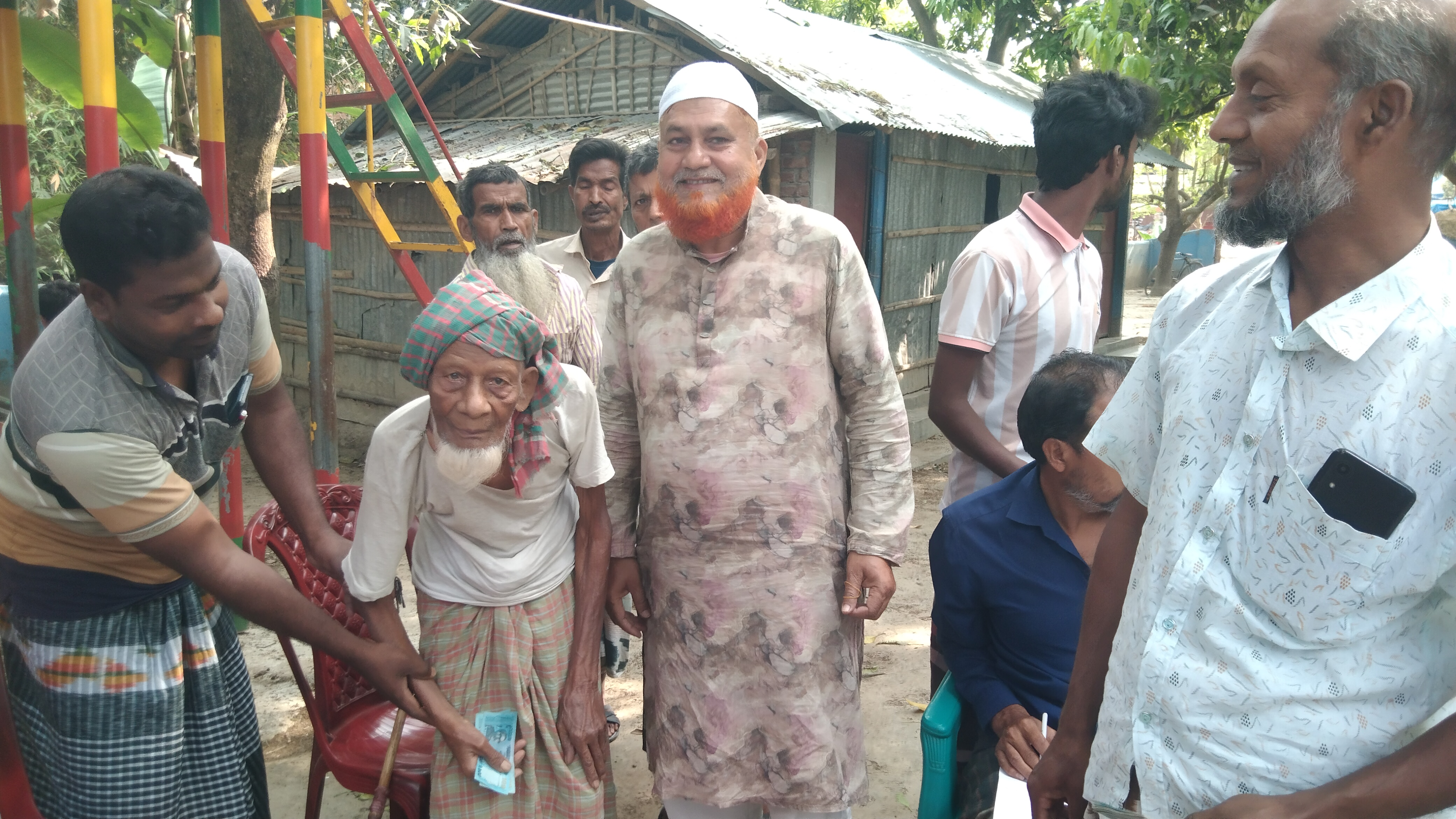 ছবি: ভোলাহাটে হতদরিদ্র-অসহায় রুগীদের মাঝে সুচিকিৎসা সেবার জন্য নগদ অর্থসহ ঈদসামগ্রী বিতরণ করলেন হাজী সারওয়ার জাহান মাষ্টার। পাশে-নগদ অর্থগ্রহণকারীদের একাংশ।